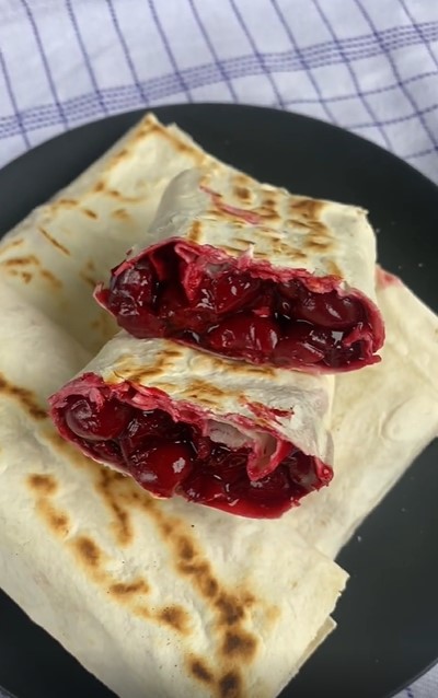 Приготовление: вишню очищаем от косточки, после чего добавляем в нее сахар и крахмал. Смесь провариваем 3-5 минут до загустения. Лаваш разрезаем на 6 частей. На него выкладываем начинку. Закручиваем и обжариваем на сковороде по несколько минут с каждой стороны. Ленивые пирожки с вишней готовы, можно пробовать!