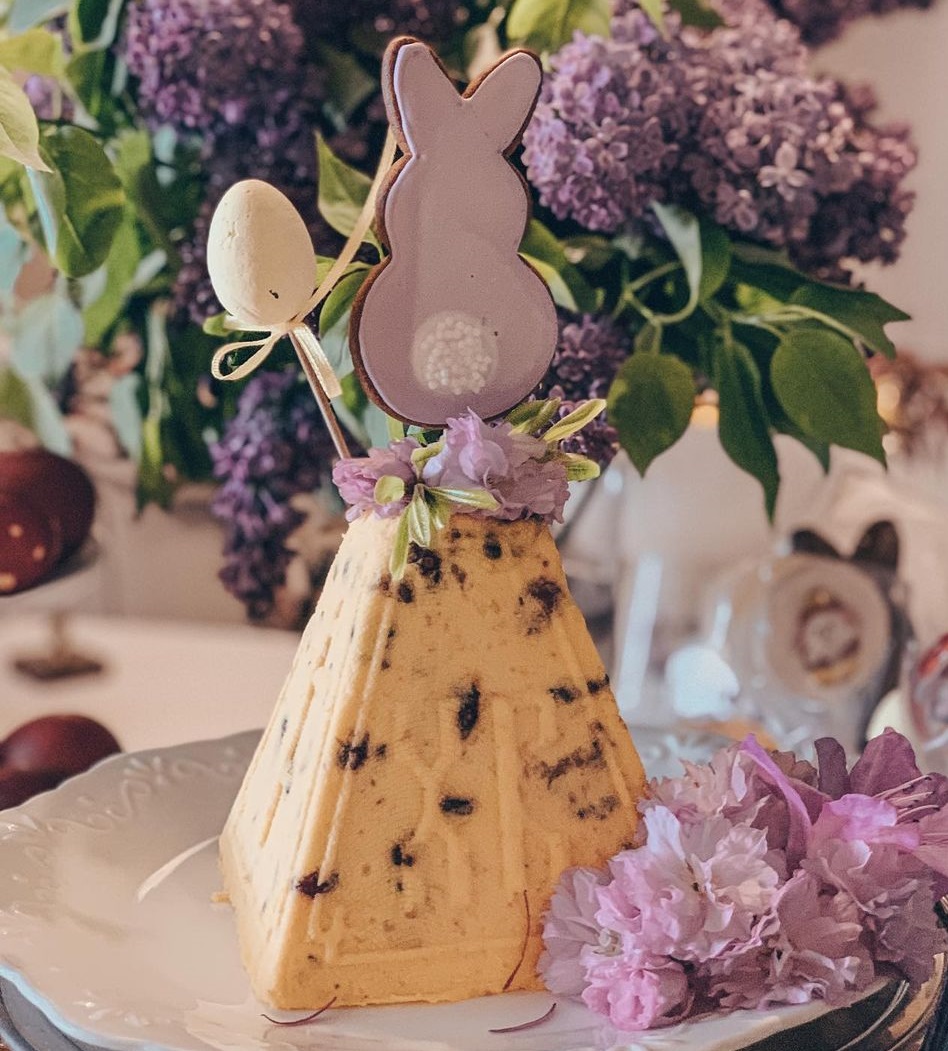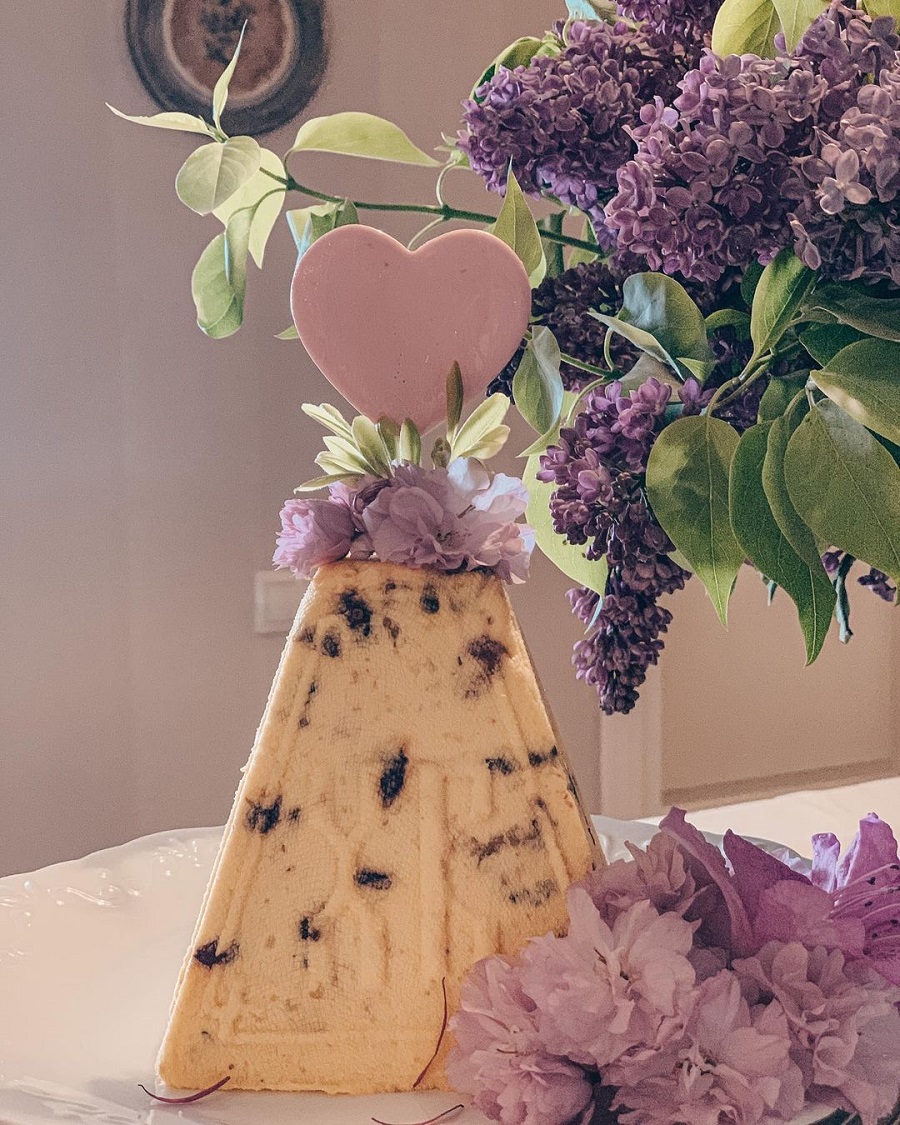 Затем достаем творожную паску из формы и украшаем на свой вкус пряниками или любым другим декором.