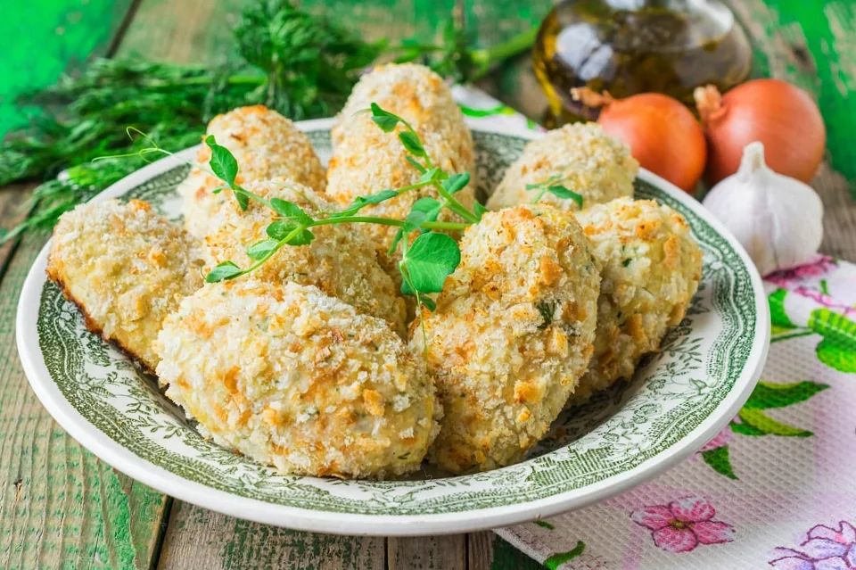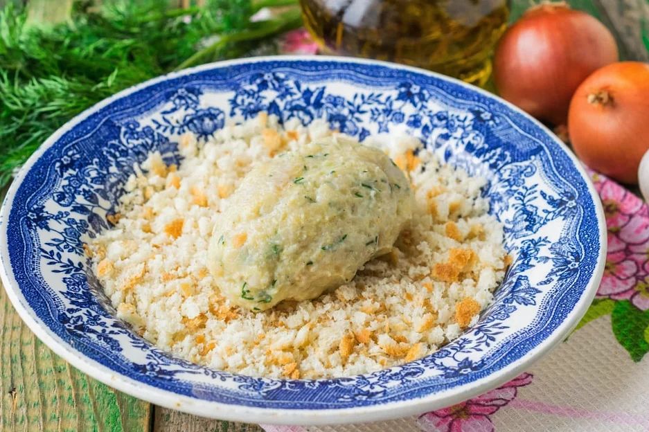 Смачивая руки в холодной воде, формуем котлеты. Обваливаем их в оставшихся хлебных крошках. Из указанного количества ингредиентов должно получиться 9 котлеток.