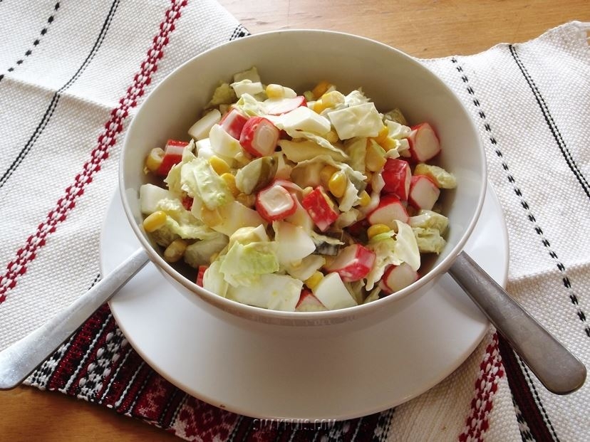 Многие украинские семьи собираются за праздничным столом не только на Святвечер, когда принято ставить 12 постных блюд, но и на следующий день – на Рождество. И если вы уже решили, что сделаете салат с фасолью, возьмите себе на заметку также любимый многими салат из пекинской капусты и крабовых палочек. theLime делится самым простым рецептом.