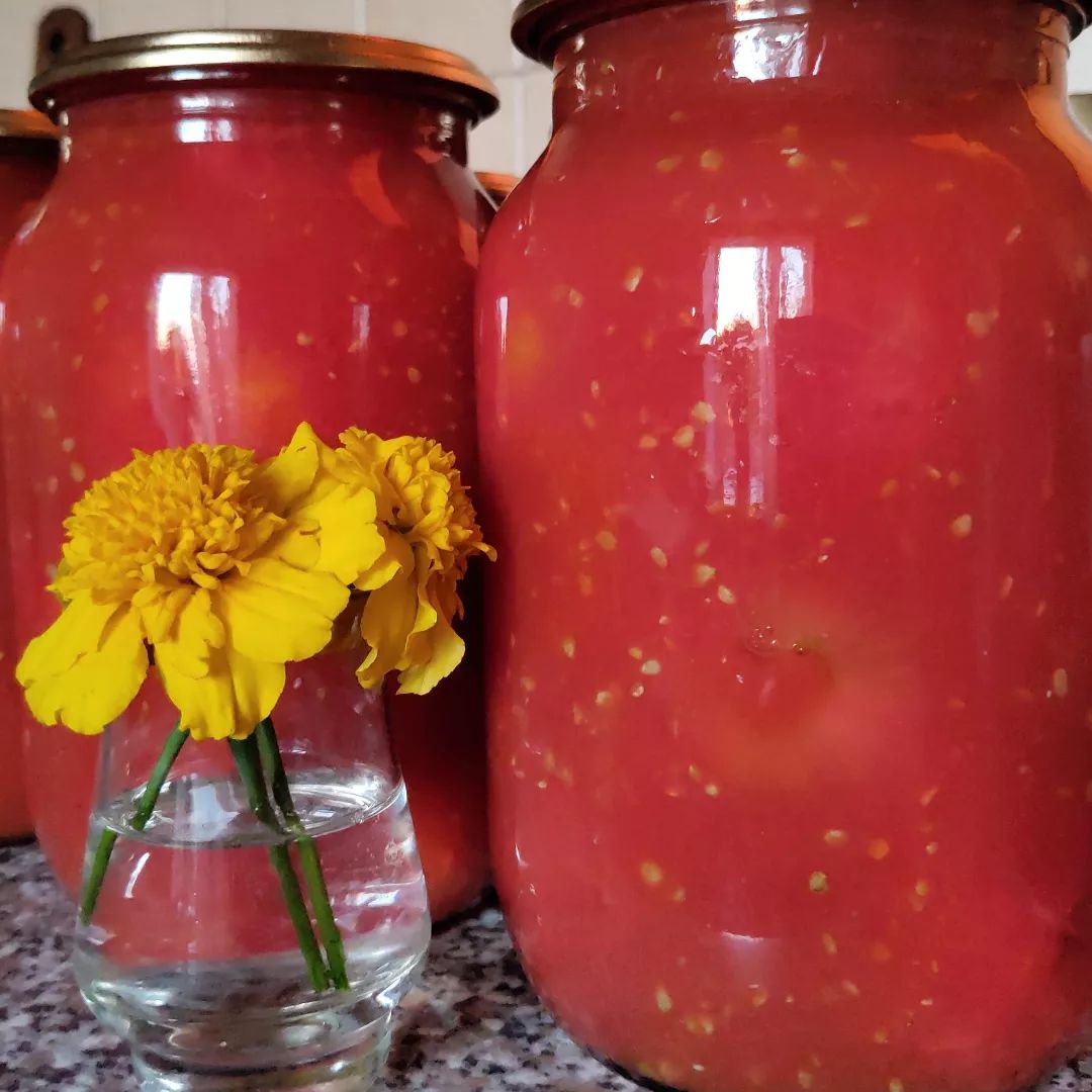 В холодное время года открываем баночку - такие помидоры и сок можно использовать для приготовления супов и соусов.