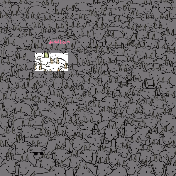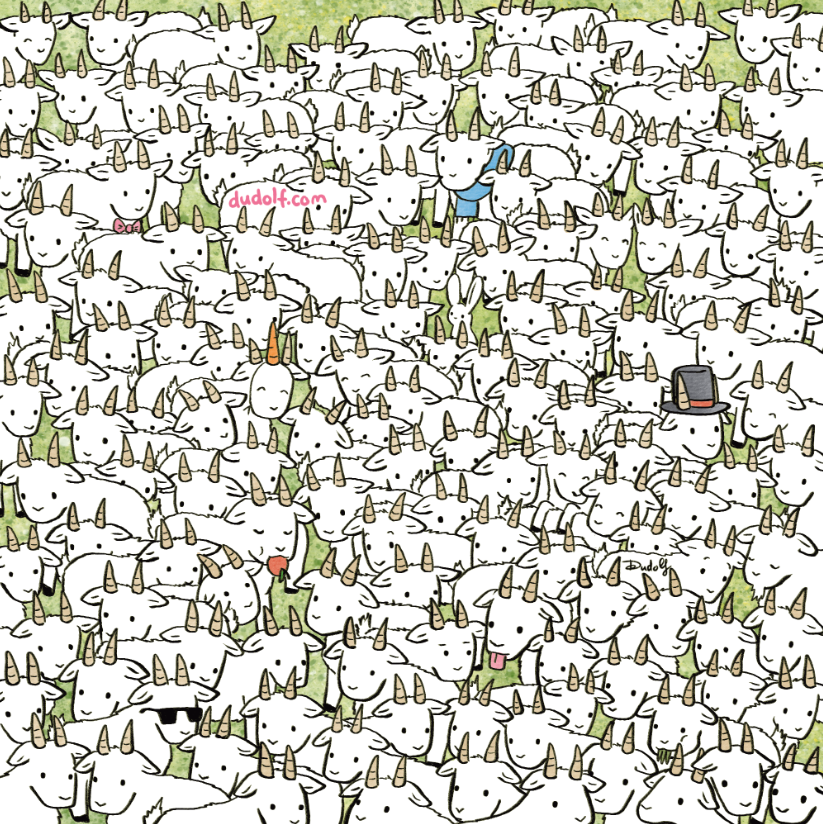 theLime предлагает разгадать новую задачу известного автора головоломок Гергея Дудаша и найти на рисунке овцу среди сотни коз.