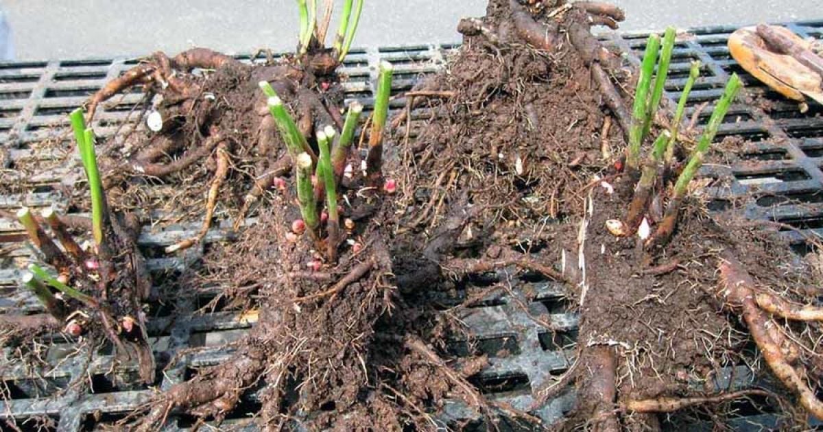Выкопанные кусты нужно разделить на несколько частей, каждая из которых должна иметь три-пять почек и здоровые корни без гнили и повреждений.