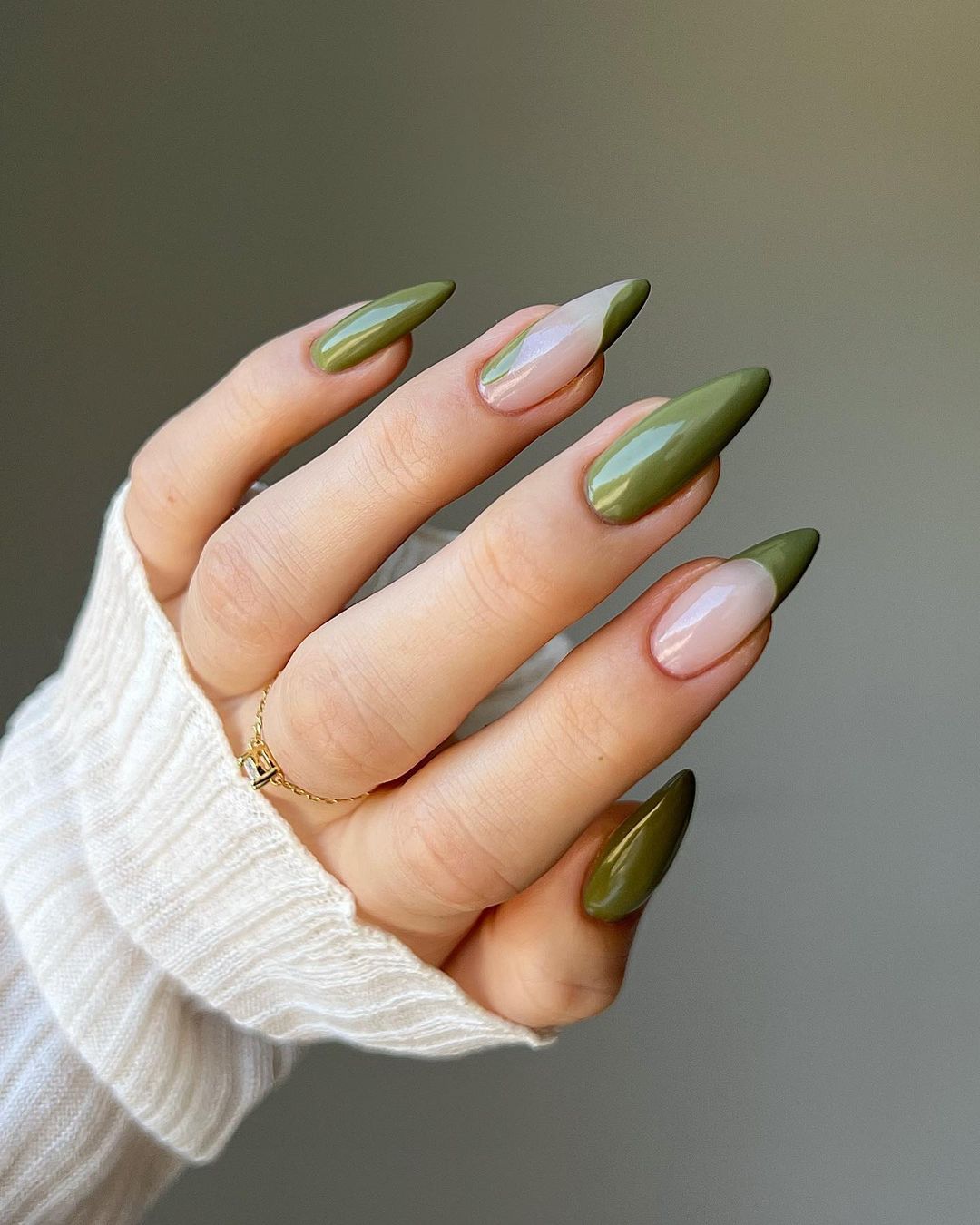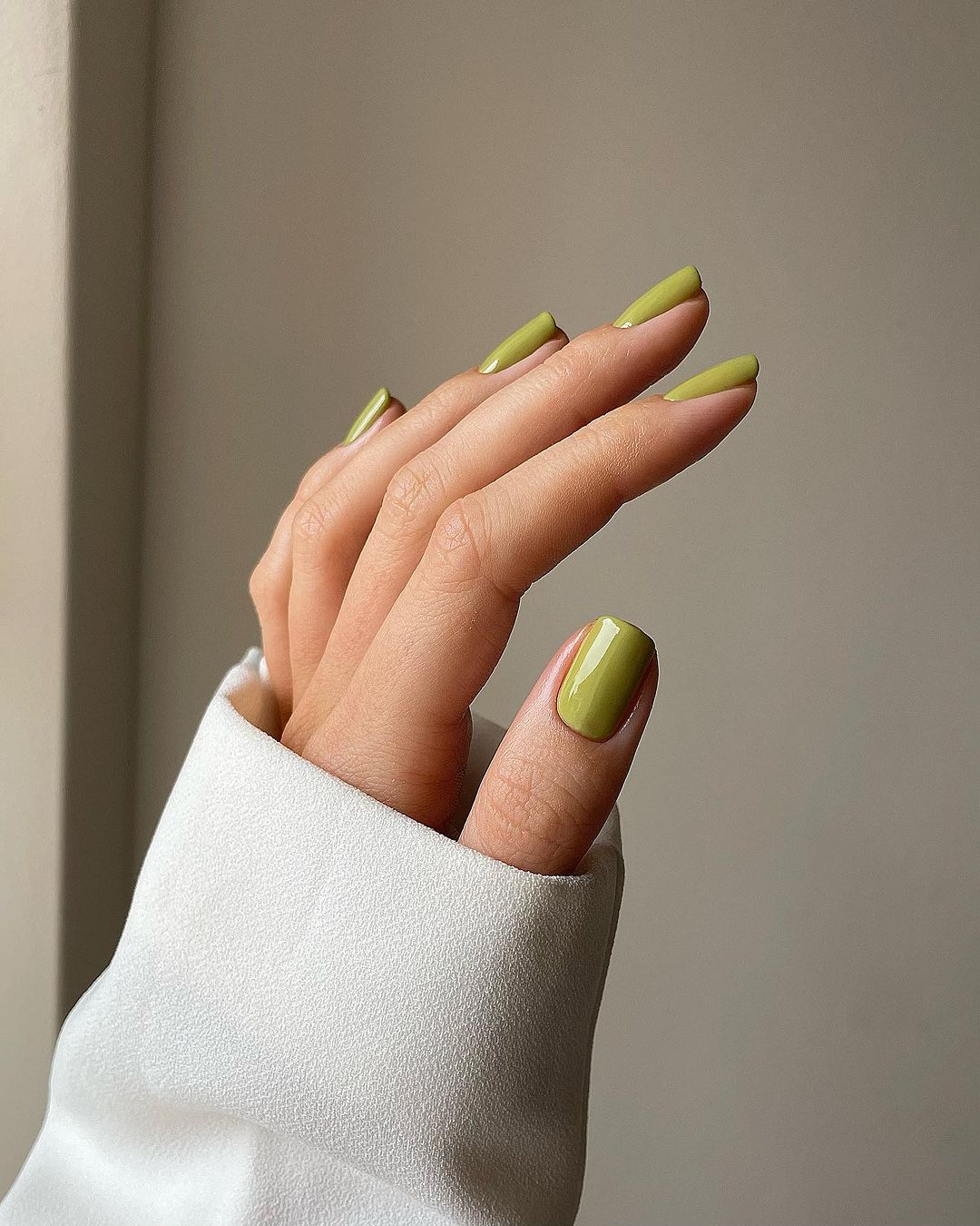 Зеленые ногти - еще один способ насладиться красотой ранней осени. Зеленый маникюр имеет множество оттенков, позволяющих мастерам экспериментировать с вариантами. Осенний маникюр в зеленых тонах прекрасно смотрится как на квадратных и полукруглых ноготках, так и на миндалевидной и острой форме.