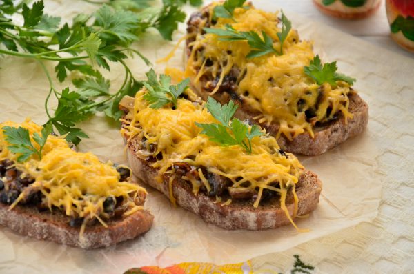 Подаем аппетитные горячие бутерброды с грибами и сыром к столу и наслаждаемся быстрой закуской.