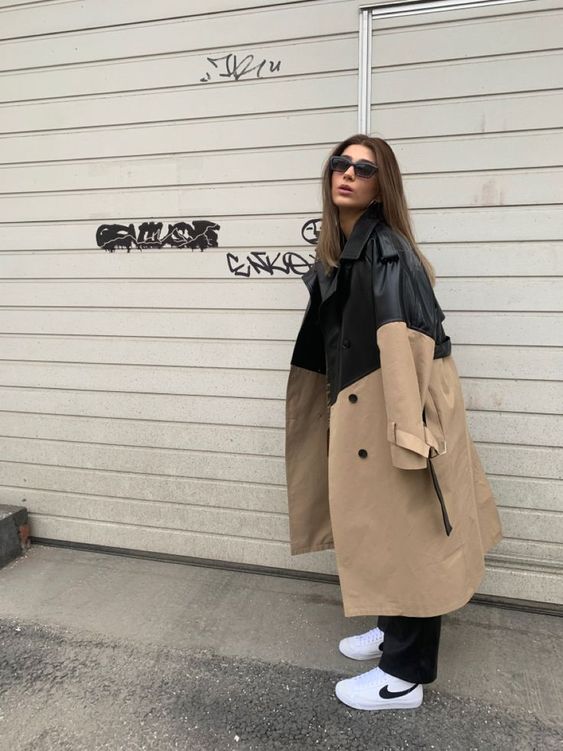 Выделиться из толпы поможет тренч, сшитый из разных тканей. Благодаря необычной расцветке и оригинальному фасону любой повседневный образ станет свежим и необычным.