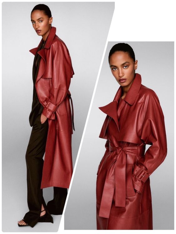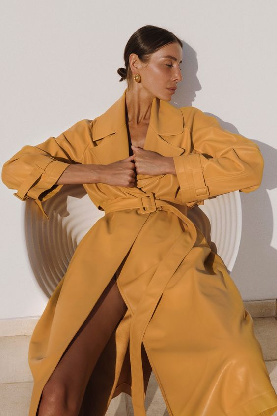 Плащи из эко-кожи присутствуют в коллекциях модных брендов из года в год и всегда на пике популярности. В 2023 году кожаным тренчам придали сочности, поэтому приобрести красный, зеленый или желтый плащ будет правильным решением.