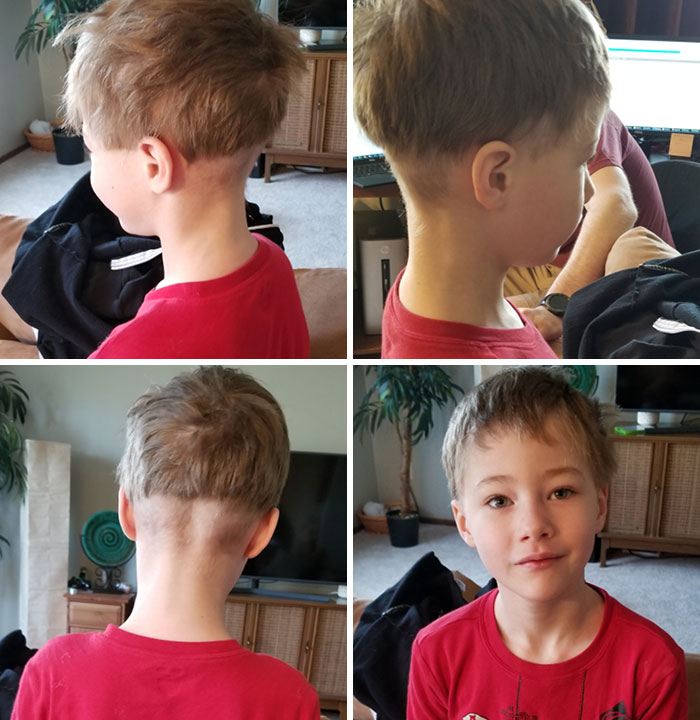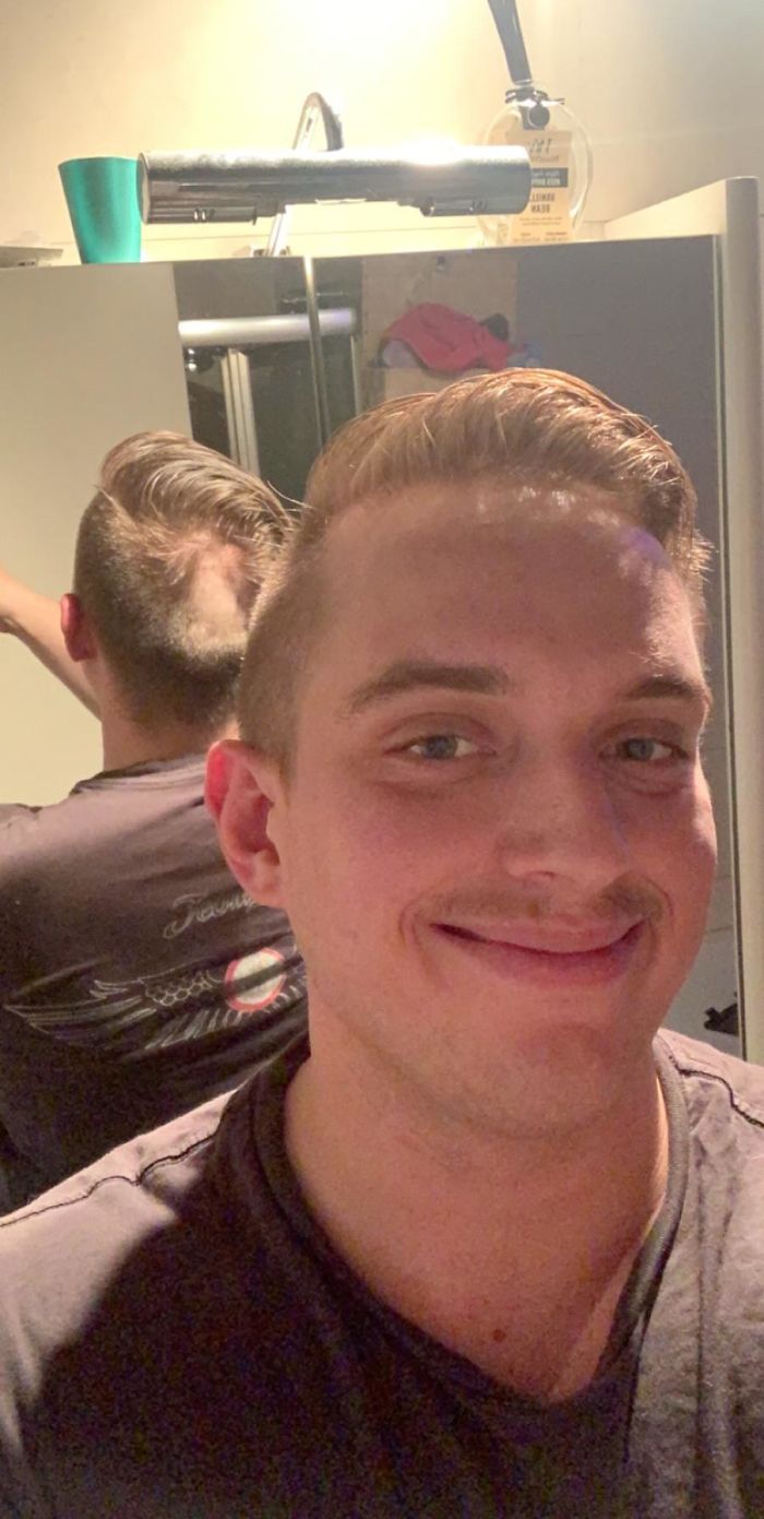 Мужчины с разных уголков мира делятся фотографиями с неровно выбритыми висками и затылком, асимметричными челками, проплешинами и даже показываются с модной в 90-е стрижкой под горшок. Глядя на эти снимки хочется одновременно плакать и смеяться.