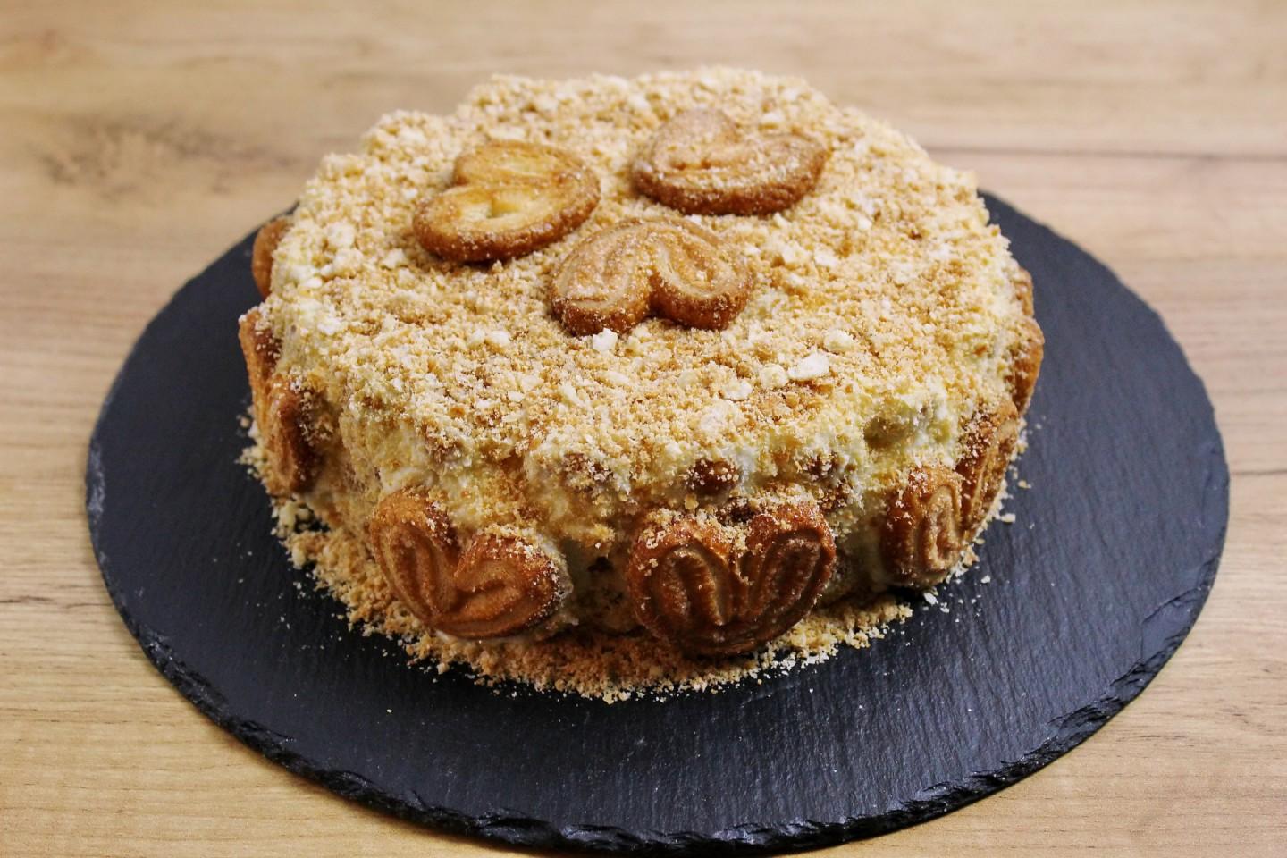 Ингредиенты для формы диаметром 20 см: печенье "ушки" (500 г).