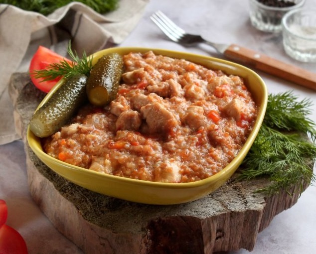 - Пшеничная каша с мясом на обед