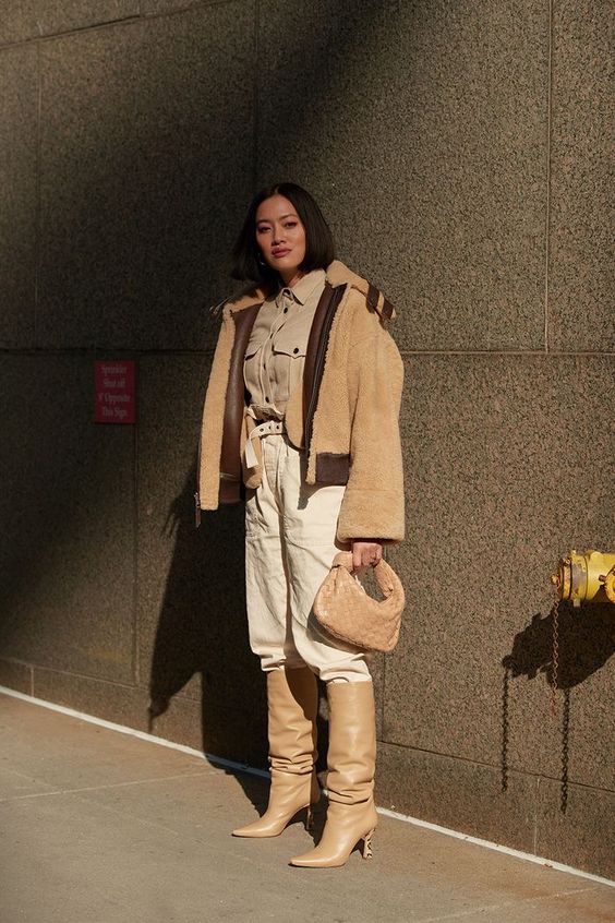 Прошли времена облегающих ботильонов-носков, которые едва можно натянуть на лодыжку. В этом году набирают популярность сапоги-слоучи, которые были в гардеробах в 2022 году. Этот тренд можно носить по-разному, что дает безграничные возможности по стилизации. Носите их с мешковатыми джинсами, чтобы составить негабаритный образ, или в паре с колготками и платьем-свитером для создания уютного дуэта.