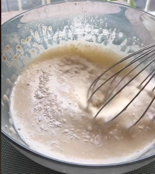 Яйца взбиваем до белого цвета и добавляем к запаренной овсянке. Всыпаем разрыхлитель и тщательно вымешиваем венчиком.