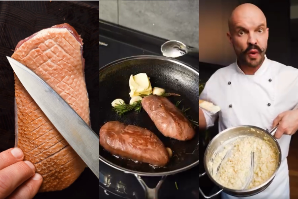Украинский повар Владимир Ярославский, недавно готовивший еврейское блюдо, поделился рецептом приготовления утки и "ризотто" из сельдерея. Он объяснил, что очень важно соблюдать баланс и не пережарить мясо.