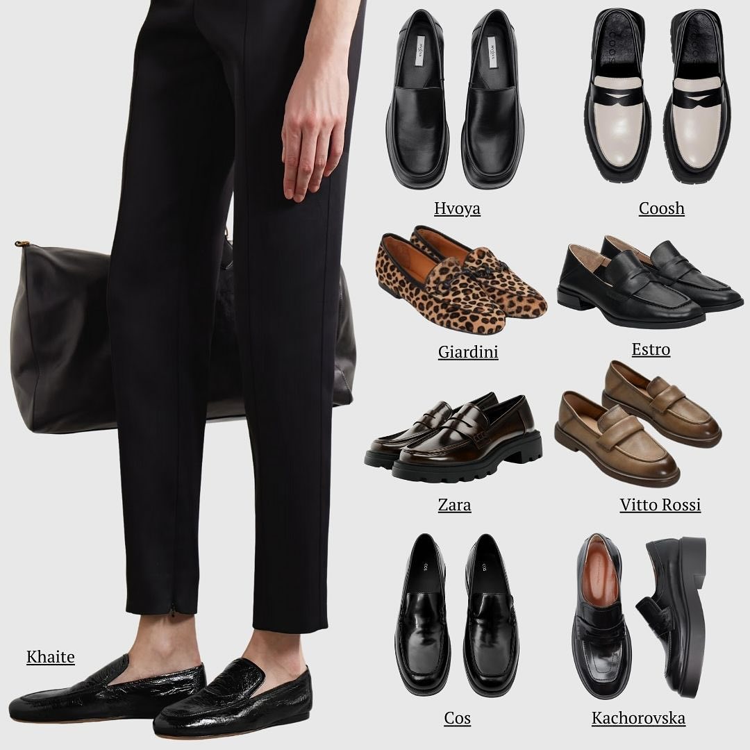 В 2024 году самыми популярными стали лоферы на платформе и с грубой тракторной подошве, классическая модель, вариант из лакированной кожи, а также с леопардовым принтом.
