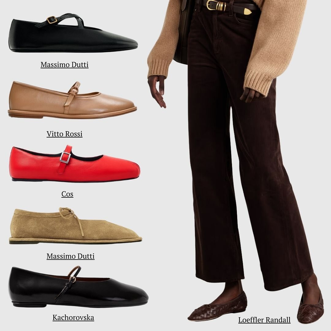 Еще один мастхев на весну-2024 – это балетки. Это классическая модель женской обуви с закрытым носком на плоской подошве или с маленьким устойчивым каблуком. Такие туфли получили свое название за сходство с профессиональной обувью для балета.