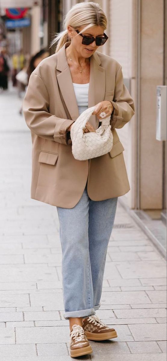 В наши дни все молодые люди носит пиджаки больших размеров, и, возможно, они что-то знают. Действительно, блейзеры фасона оверсайз просты в стилизации и невероятно удобны. По словам стилиста, объемный пиджак поможет женщинам 50-60 лет выглядеть и чувствовать себя молодо.