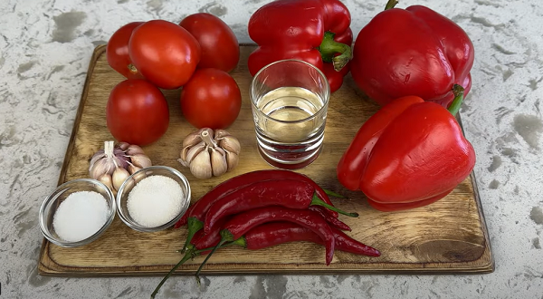 Существует множество вариантов соуса, в которые, кроме сладкого перца, чеснока, зелени и перца чили, входят дополнительные продукты – помидоры, яблоки, морковь и другие овощи.