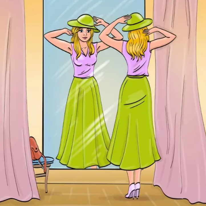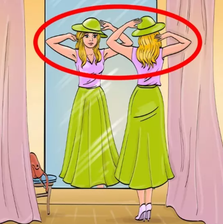Мозг человека нуждается в такой же тренировке, как и тело. Визуальные головоломки именно то, что для этого нужно. На изображении, выбранном для сегодняшнего задания, изображена молодая девушка, которая стоит перед большим зеркалом в гардеробной.