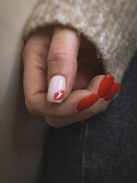 Маникюр со слайдерами - рисунком алых губ или нежной надписью на одном из ноготков, как показано на следующих фото