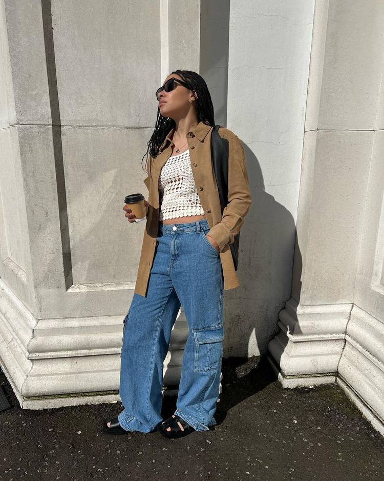 Удобные штаны с большими накладными карманами снова в моде, поэтому не бойтесь экспериментировать и создавать с ними интересные многослойные образы.