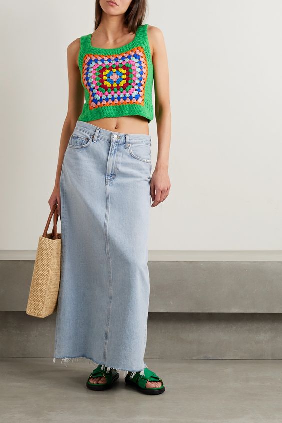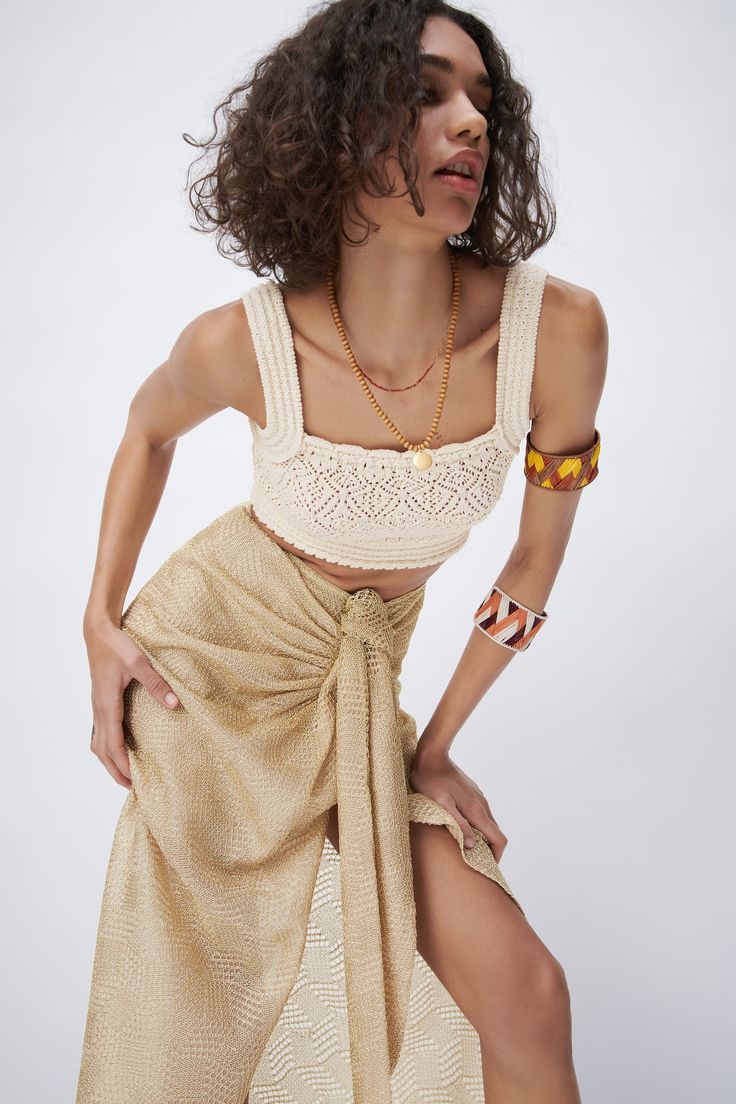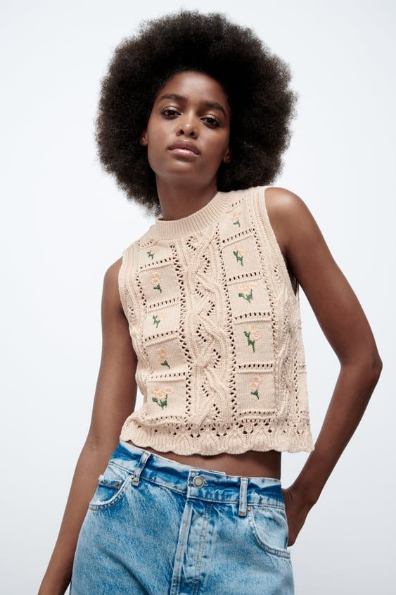 Топы, связанные крючком, были в моде в 90-х годах. Они были игривым летним фаворитом модниц в прошлом, и продолжают покорять сердца современных девушек. В 2023 году можно найти симпатичные цветные кроп-топы или варианты в спокойных нюдовых оттенках.