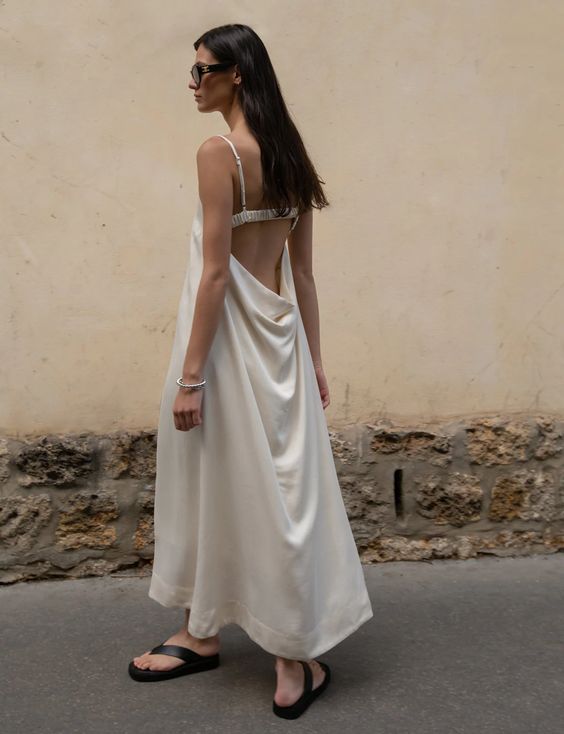 Мода 90-х не боялась экспериментов. Вещи, предназначенные для ношения под одеждой, были главным элементом образа. К примеру, платье-комбинация из облегающего тонкого материала с узкими бретельками было практически у каждой модницы, и теперь этот тренд снова заполонил улицы. В 2023 году платья в бельевом стиле можно встретить как в длинном, так и коротком варианте.