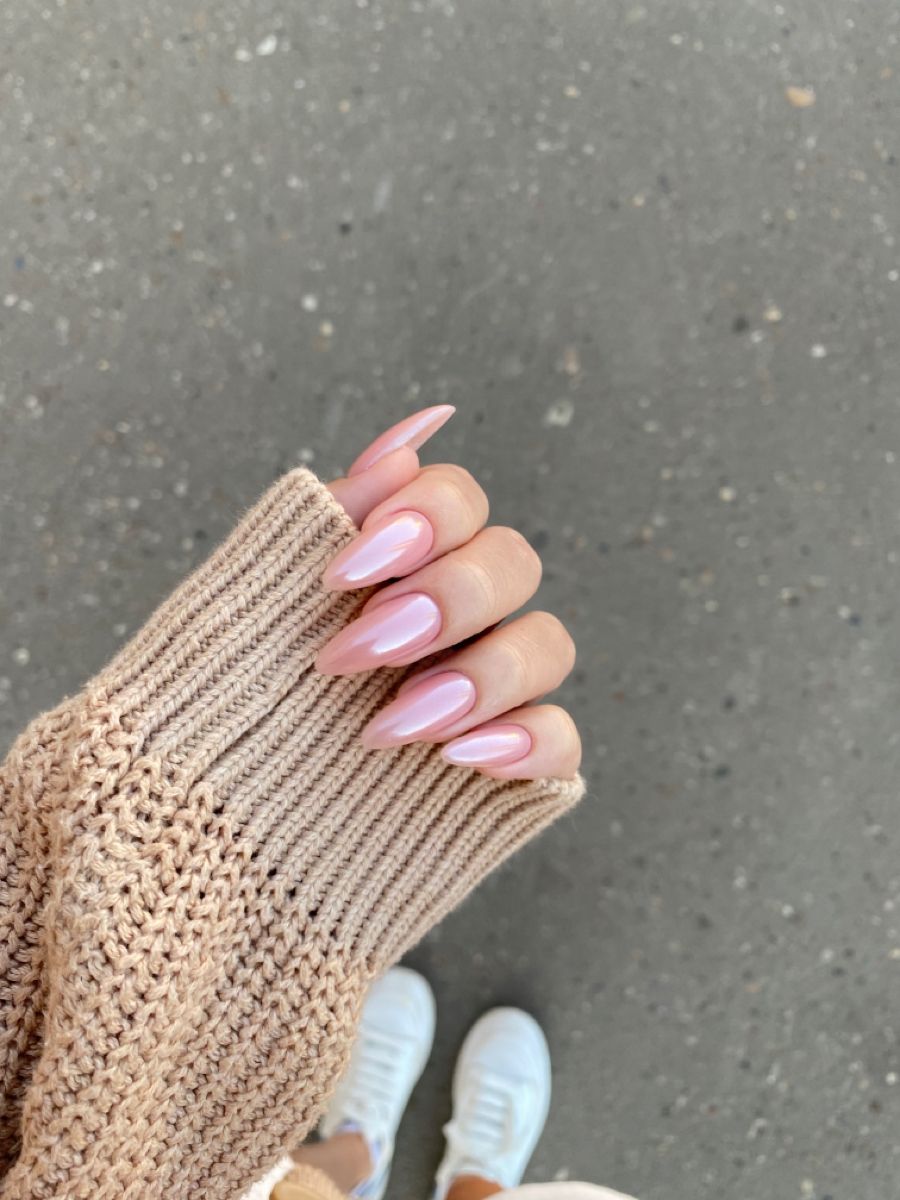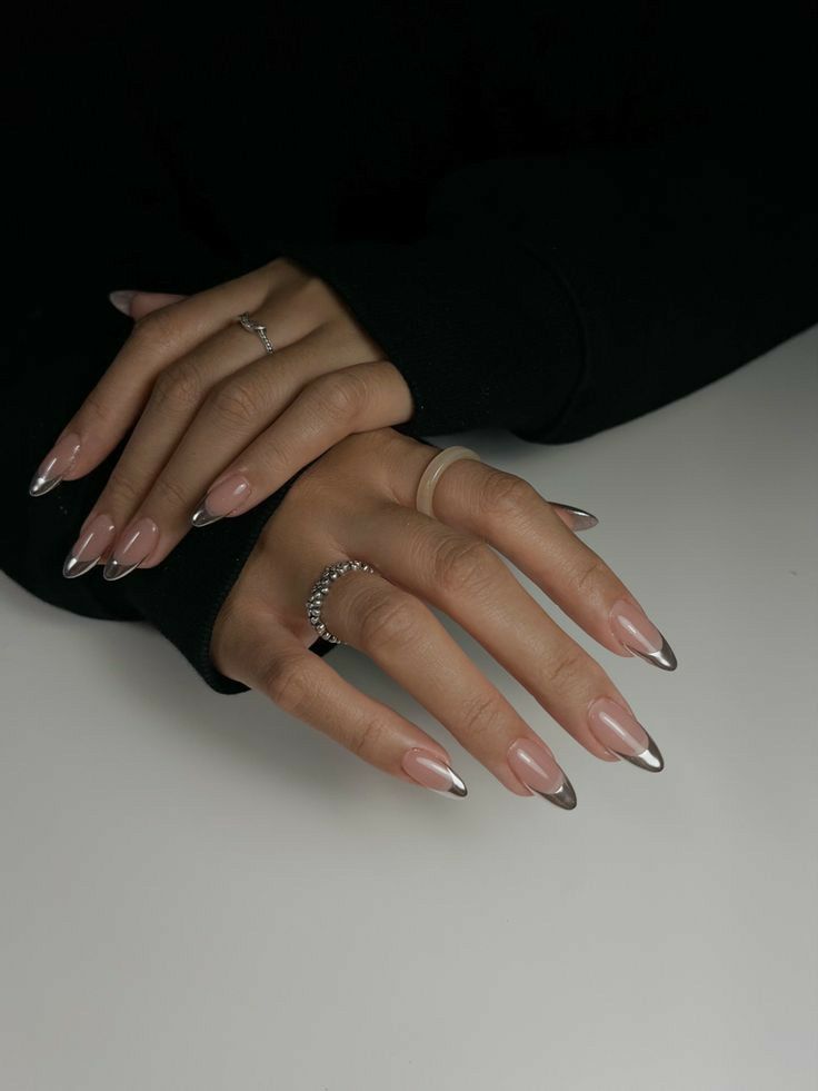 Хромированные ногти - еще один вариант осеннего маникюра. Этой осенью актуален натуральный вариант с глянцевым розовым покрытием и более дерзкая версия - ногти хром с зеркально-металлическим эффектом.