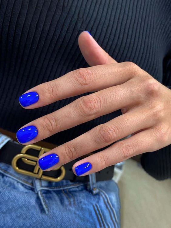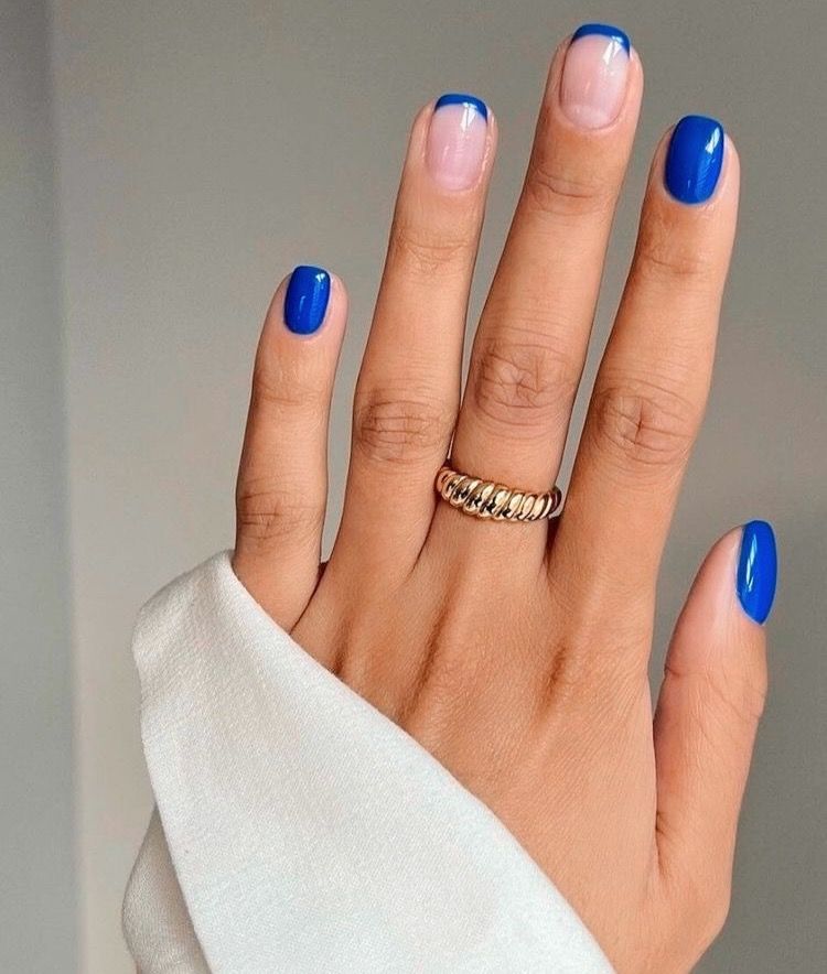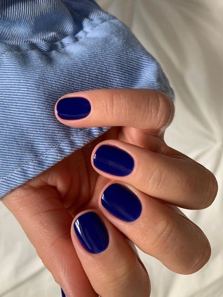 Невозможно представить осенний маникюр 2023 без синего цвета. Этот благородный цвет великолепно смотрится и в качестве самодостаточного однотонного покрытия, и в комбинации с другими оттенками, например нюдовым. Насыщенный кобальтовый, глубокий сапфировый, яркий королевский - все эти оттенки синего фавориты этой осени.