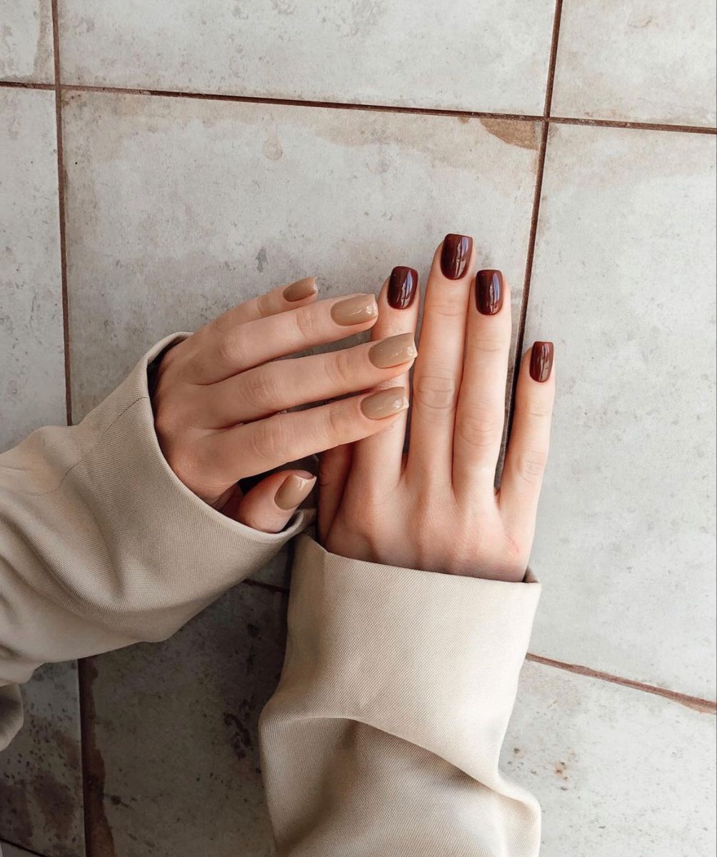 Маникюр в коричневых тонах - классический выбор на осень. Красота коричневого цвета заключается в его универсальности, позволяющей сочетать его с другими оттенками из осенней палитры. Коричневый маникюр прекрасен как на коротких, так и на длинных ногтях. Коричневые ногти смотрятся стильно и создают атмосферу осени.