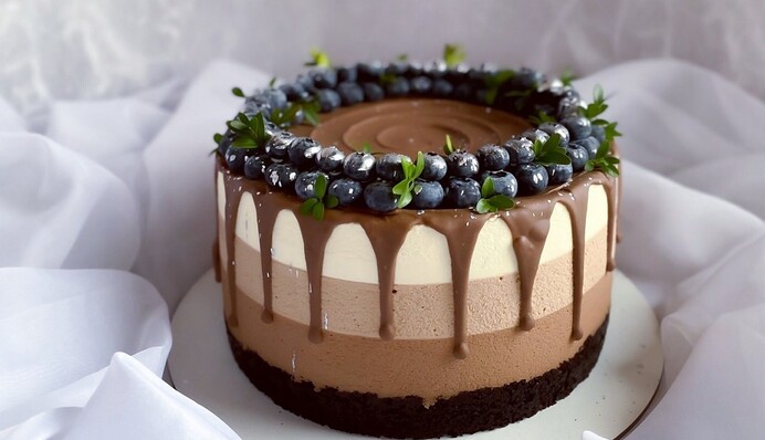 Желательно, чтобы торт "Три шоколада" постоял в холодильнике минимум 10 часов или ночь до подачи. Тогда он хорошо стабилизируется.