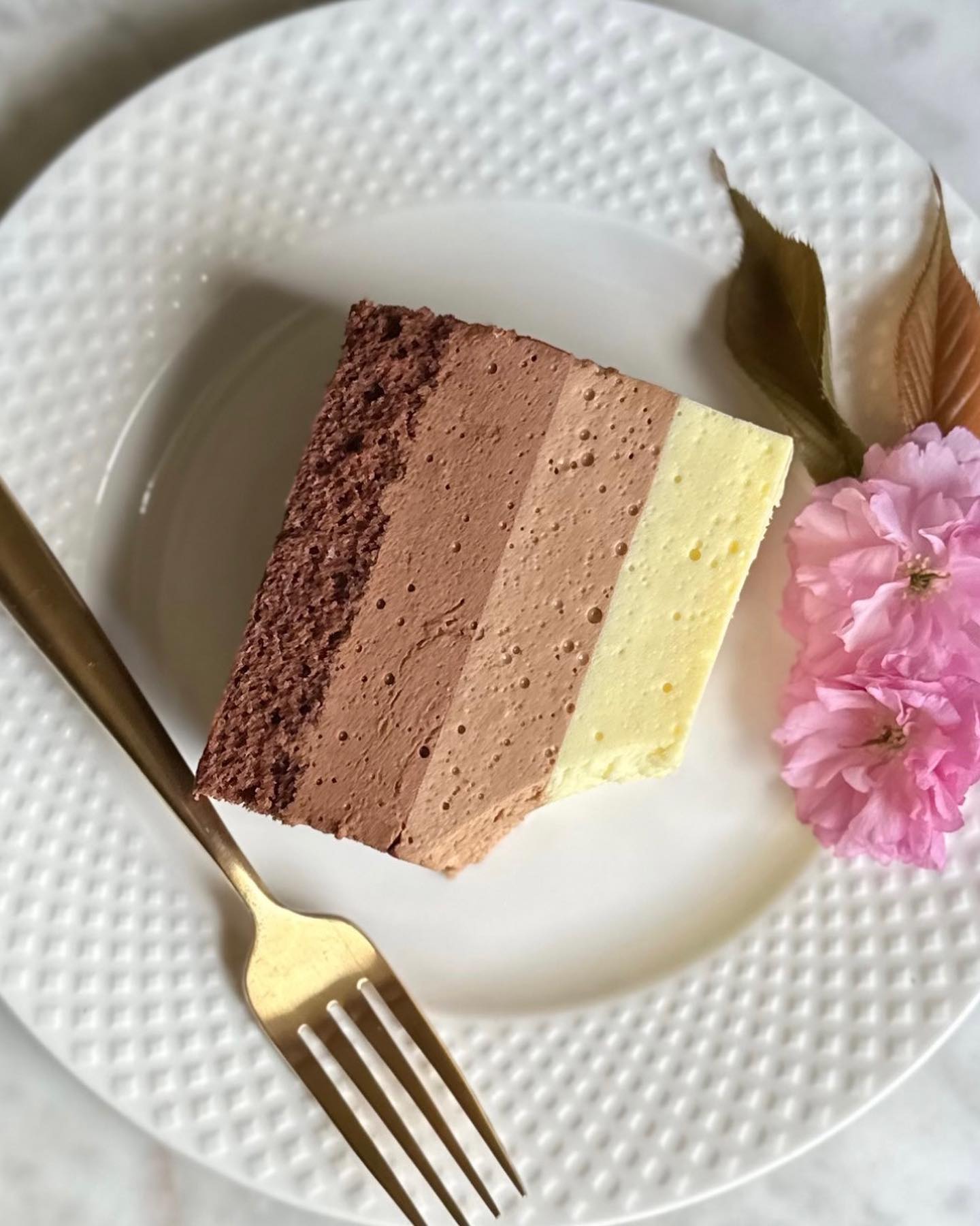 Далее готовим мусс с молочным шоколадом по тому же принципу. Снова ставим в холодильник на час. Последним будет мусс с белым шоколадом.
