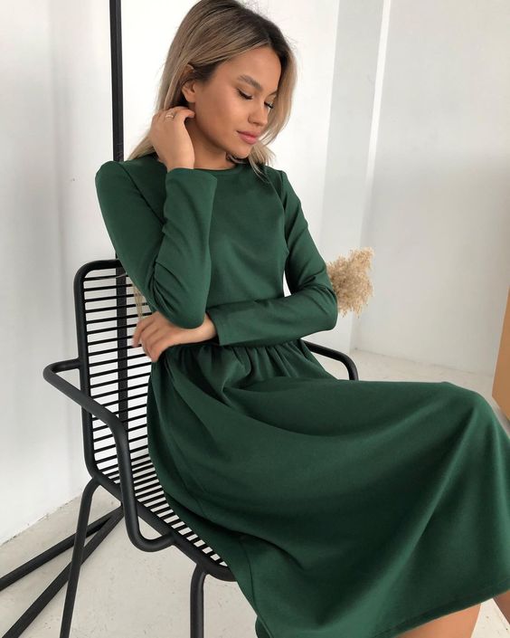 Для празднования Нового года можно выбрать короткое платье с запахом, расшитое пайетками, с объемными рукавами и глубоким декольте, а также длинный вариант с огромным бантом спереди. Если же вы планируете встречать праздник в семейном кругу, подберите трикотажное платье зеленого или изумрудного цвета.