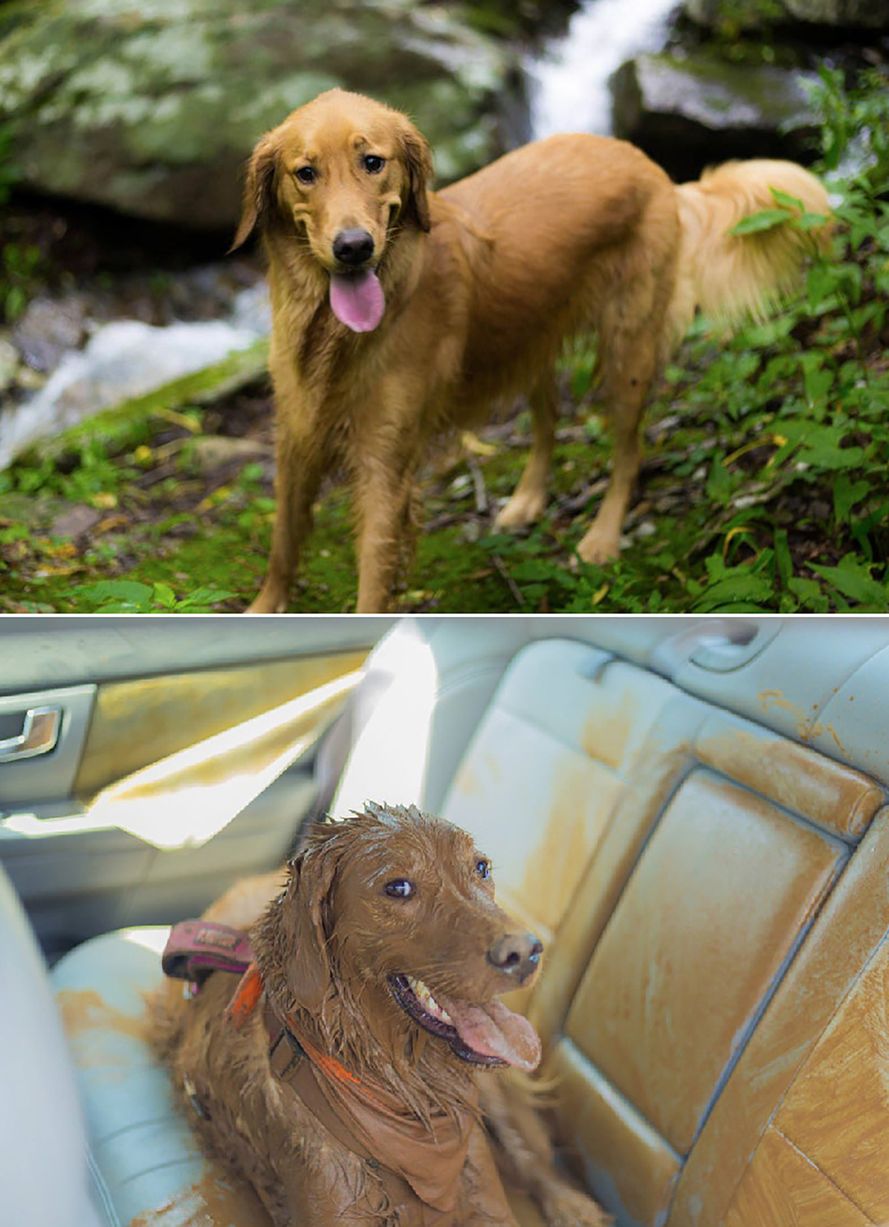 Золотистый ретривер Ваглс просто хотел раскрасить автомобильные сиденья под цвет своей шерсти.