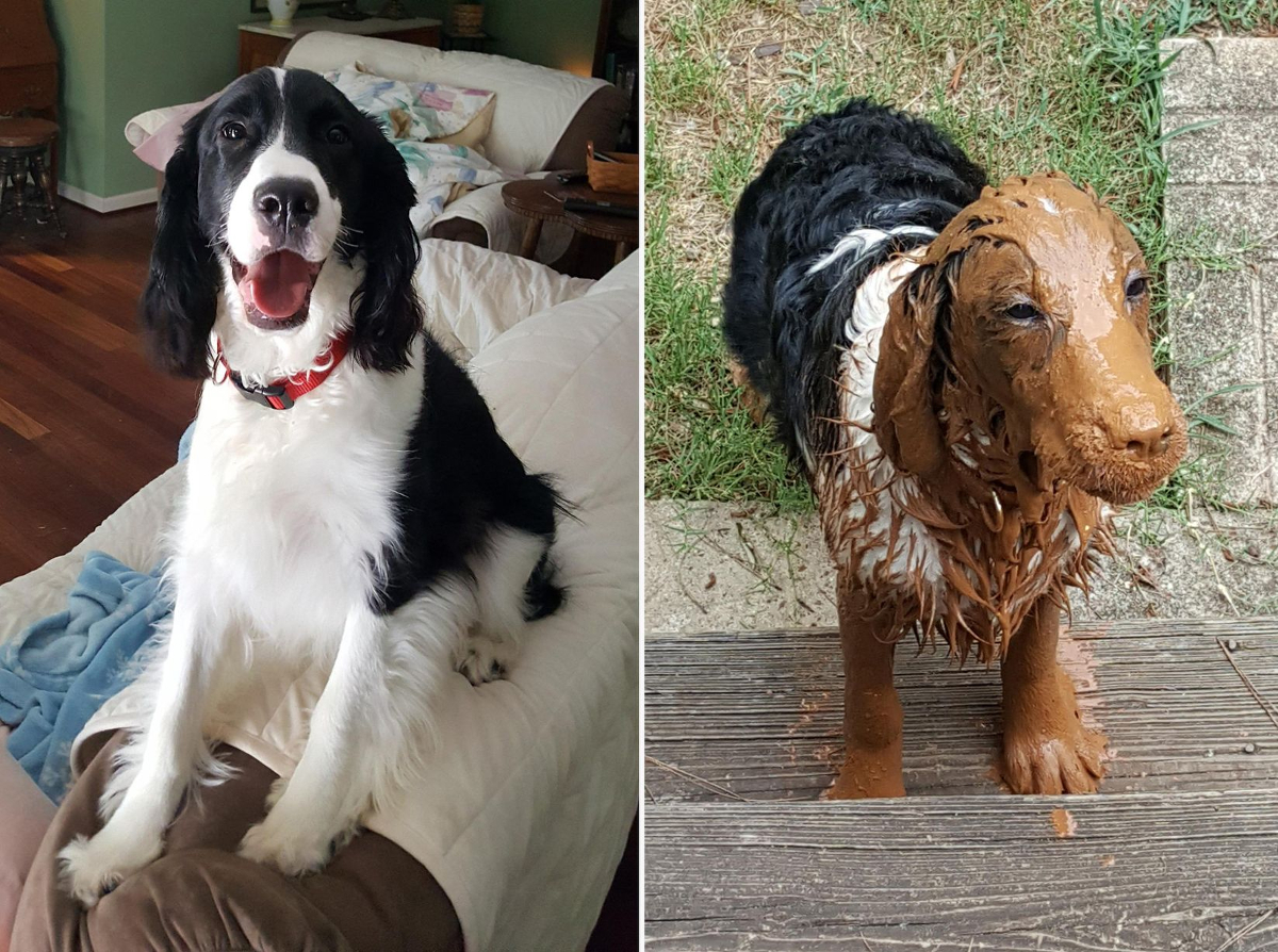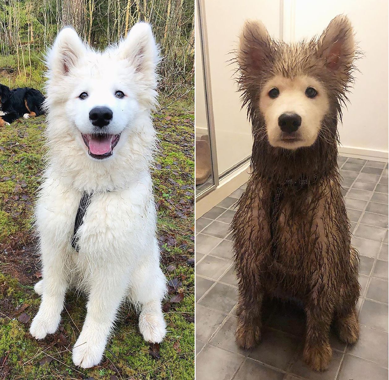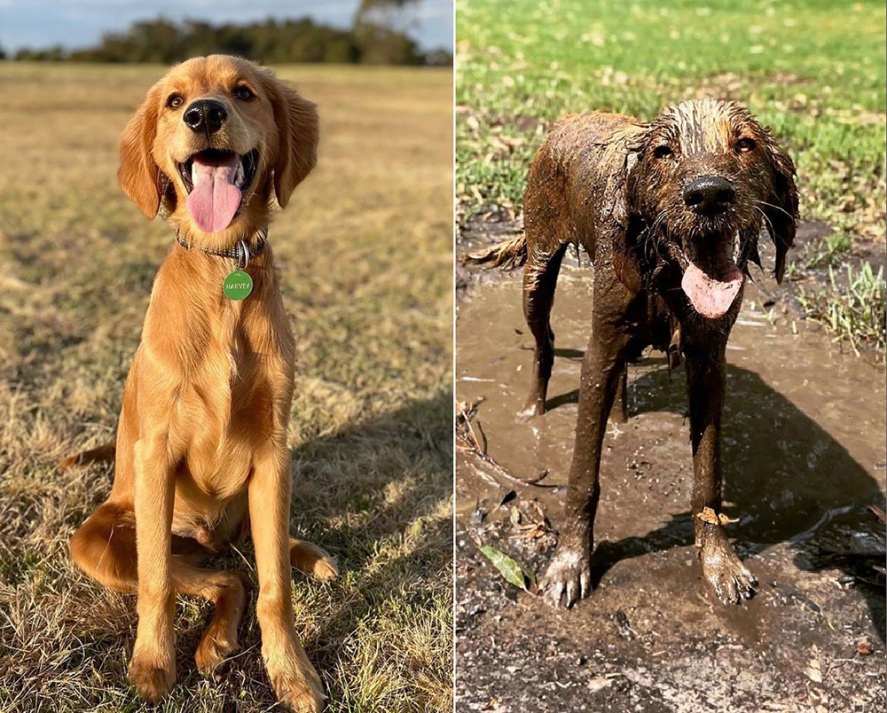 Публикация Кларка собрала в соцсетях тысячи лайков и понимающих комментариев. Выяснилось, что Бо и Бастер - не единственные собаки, которые всем спа-процедурам предпочитают старое доброе болото или лужу. Теперь владельцы собак делятся веселыми фото до и после "грязевого обертывания", и эти перевоплощения стоит увидеть.