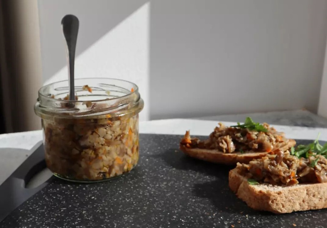 Ждем, пока грибная икра немного остынет, затем подаем к столу с тостовым хлебом или гренками.