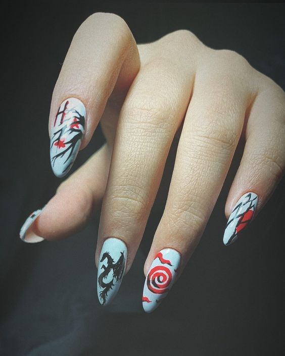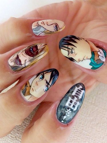 Еще один символ Японии – это, конечно же, аниме – то есть экранизации японских комиксов. Поэтому вы можете разнообразить ваш маникюр любимыми персонажами и иероглифами.