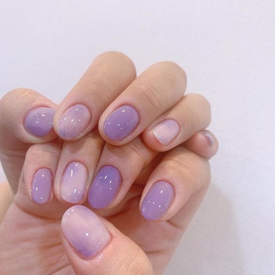 Еще один дизайн в японском стиле – оригинальное полупрозрачное омбре – то есть переход от более темного оттенка к светлому.
