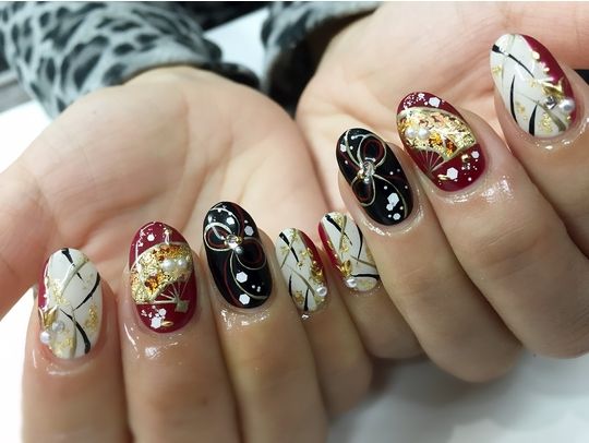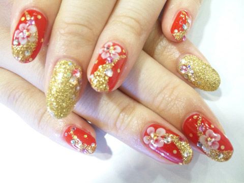 Как известно, красный цвет и все его оттенки очень популярны в Японии. Поэтому вы можете выбрать дизайн с этим цветом и дополнить его золотистыми блестками, надписями или рисунками.
