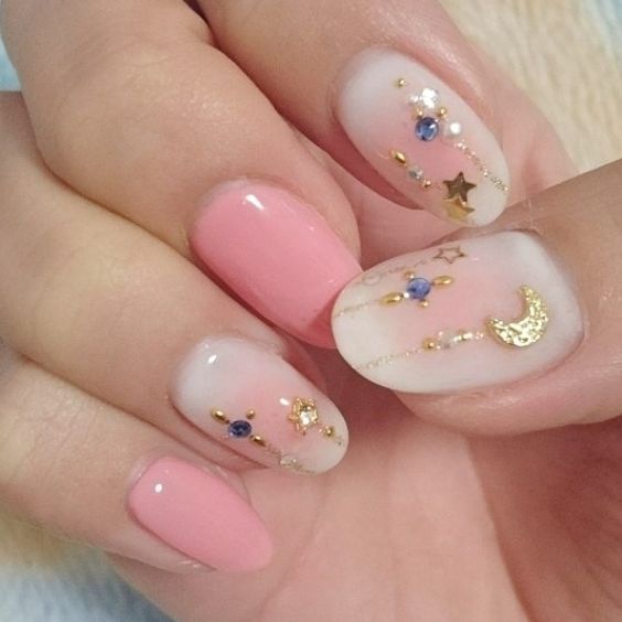 Еще одна фишка японского маникюра – полупрозрачные лаки пастельных тонов. На них можно наносить всевозможные рисунки, особенно выигрышно будут смотреться цветочные мотивы.