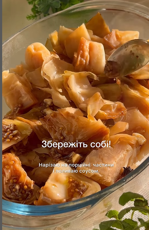 "Время от времени помешивайте капусту, чтобы она лучше впитывала соус. Лучше всего смаковать уже на следующий день!", - добавила блогер.