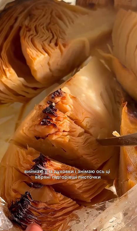 2. С запеченной капусты снимите верхние листики, которые должны стать коричневыми.