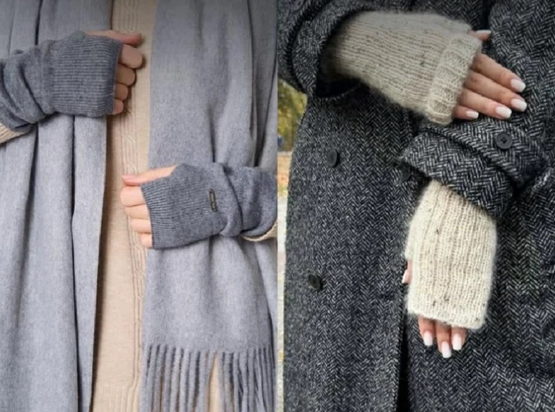 Также нетривиально выглядят текстурные перчатки и митенки (вязанные перчатки без пальцев). Обычно такой аксессуар любят женщины, которые постоянно находятся в движении и не любят ограничений.