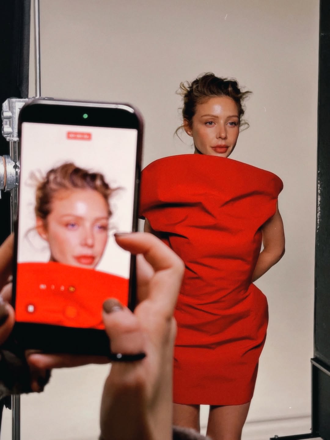 Певица продемонстрировала уверенные позы с четкой геометрией. Такой стиль используется для презентации трендов высокой моды.
