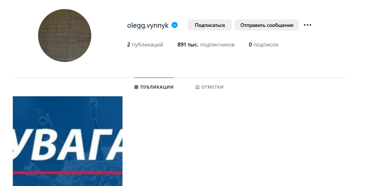На его новой странице в Instargam, которую Винник (или его менеджер) ведет с 27 ноября 2024 года, по состоянию на 19 марта 2025 всего 859 подписчиков: