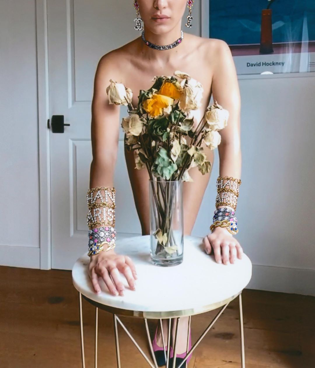 Несколько пикантных кадров знаменитость обнародовала на своей странице в Instagram. На одних фото Белла позирует обнаженной, прикрываясь букетом засохших цветов, который помещен в стеклянную вазу. На других кадрах - запечатлена топлес, заслоняя грудь босоножками на шпильке.