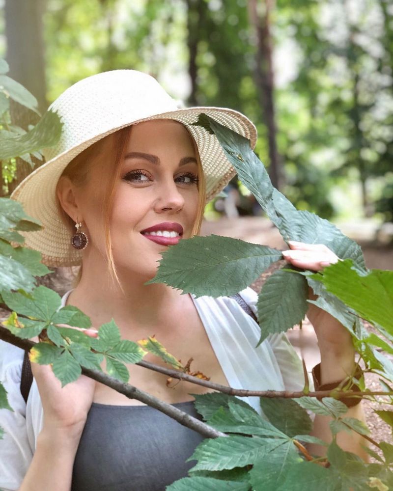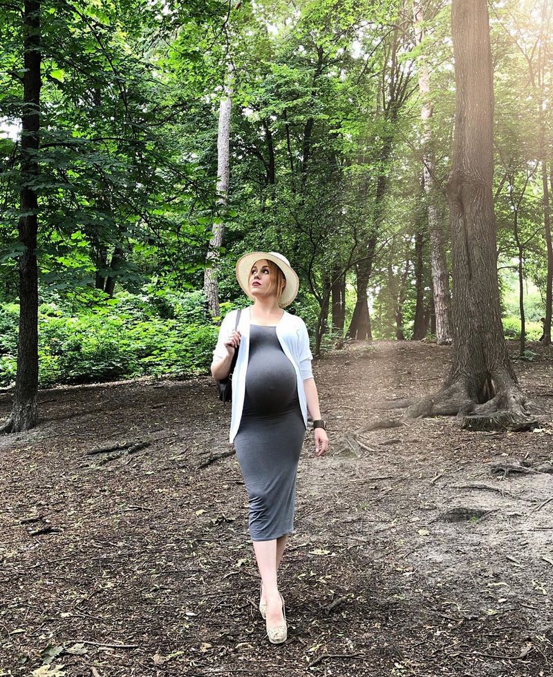 На странице артистки в Instagram появилось фото, сделанное в лесу. Для прогулки на свежем воздухе звездная мамочка выбрала платье миди серого цвета, которое облегает в области животика. Свой повседневный лук Alyosha дополнила соломенной шляпкой и обувью на каблуках.