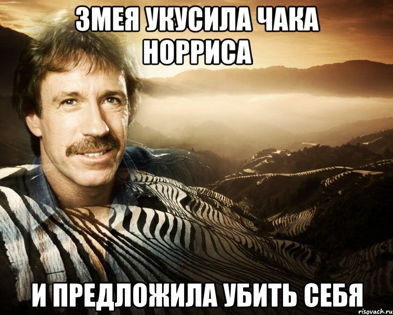 Как известно, слезы Чака Норриса могут вылечить даже самые тяжелые заболевания, а его кровь отторгает любые яды - кусая актера, змеи тут же умирают сами. Только Чак Норрис, выпав с 9-го этажа может приземлиться на 11-й. Только он за завтраком намазывает нож на масло. Как вы уже могли догадаться, сегодня вспоминаем самые забавные мемы с "техасским рейнджером".