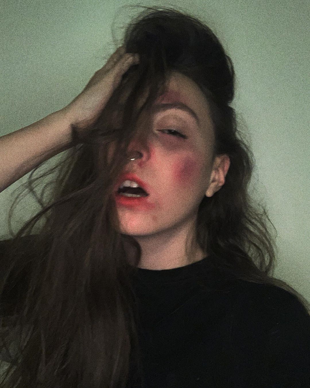 Результатом юная девушка поделилась в своем Instagram. Этот тренд получил название Mugshot Challenge. Суть его заключается в том, чтобы с помощью макияжа нарисовать на лице последствия избиений, а именно ссадины, синяки и кровоподтеки.