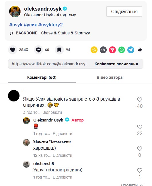 "Если Усик ответит, завтра стою 8 раундов в спаррингах", - написал один из пользователей ТикТока.