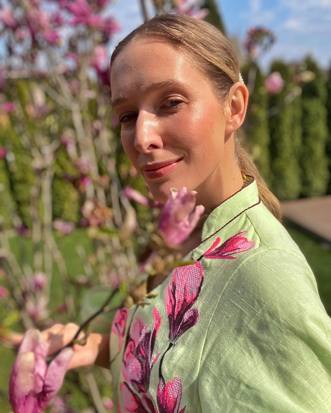 Даже на карантине Катя Осадчая не забывает радовать фанатов яркими и оригинальными образами. Телеведущая поделилась в Instagram праздничной фотосессией у цветущей магнолии, и ее роскошный наряд восхитил подписчиков едва ли не больше экзотического дерева.
